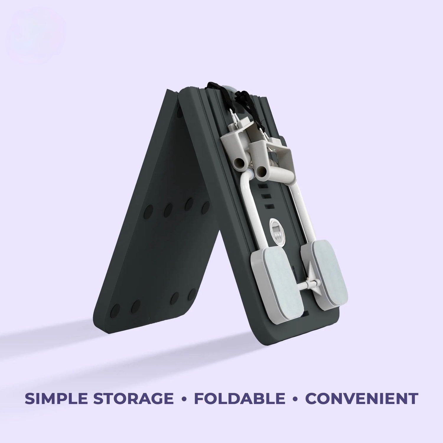 To disassemble, simply remove the attachments & accessories, and fold your FitFlo Pilates Pocket Reformer back to its compact form to be put away.