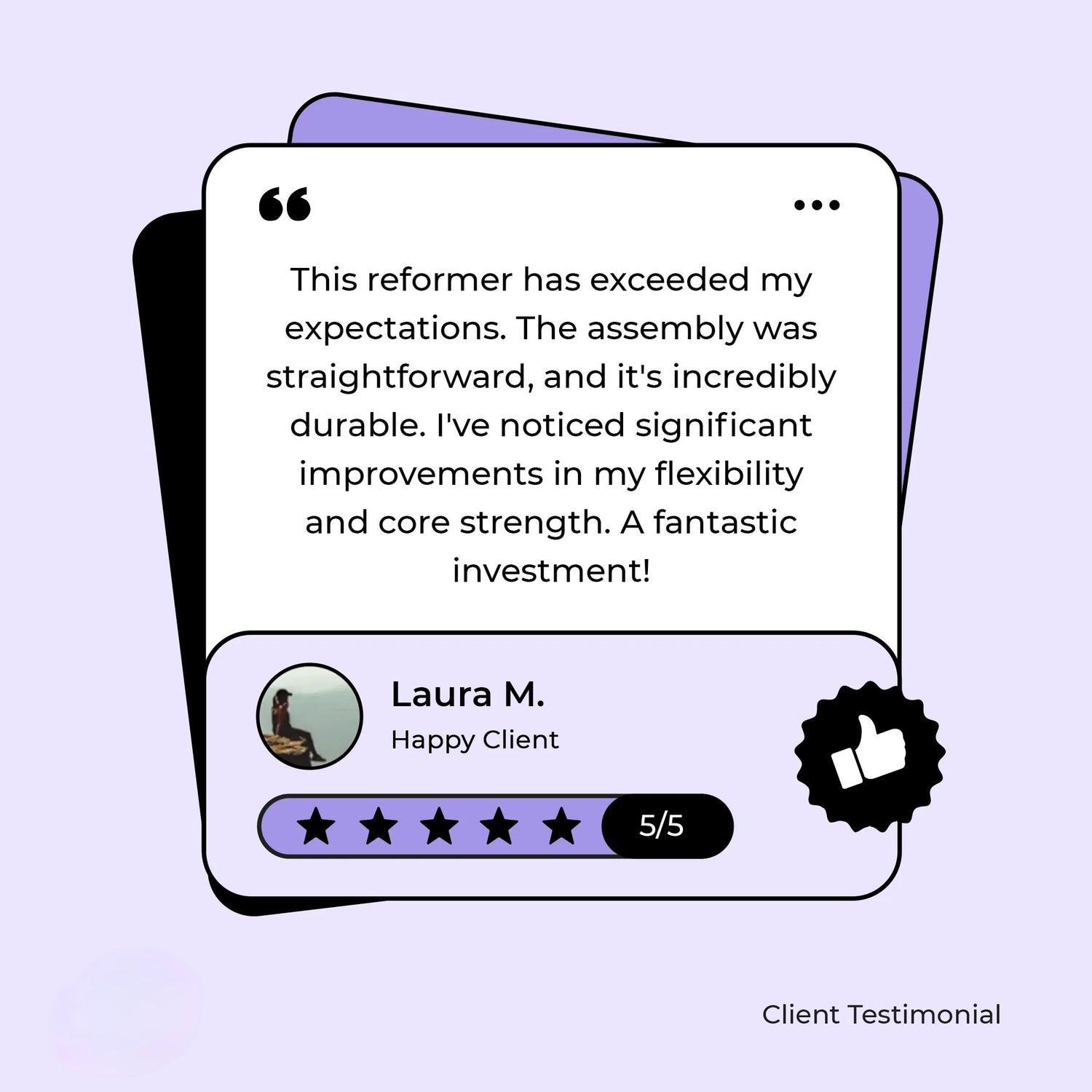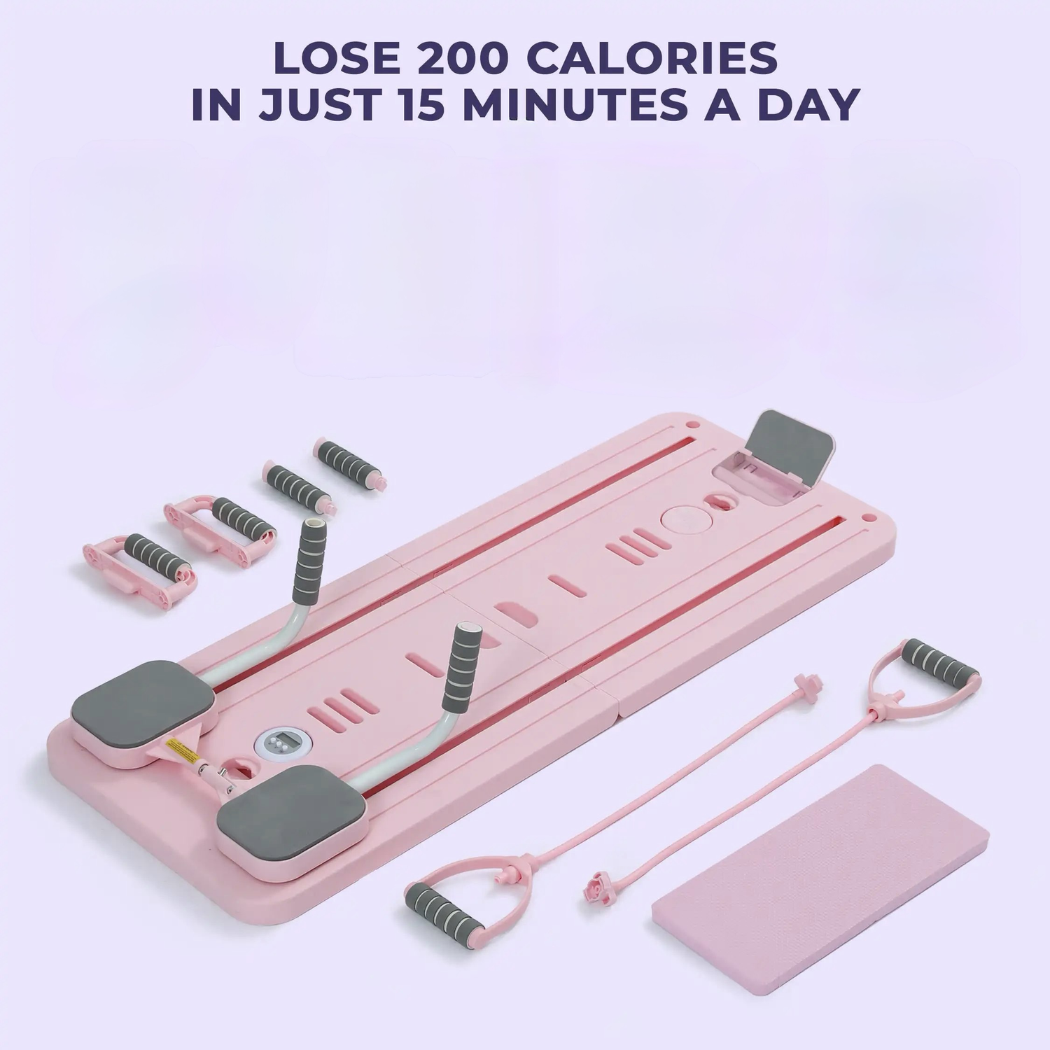 No more complex equipment or complicated setups. The FitFlo Portable Pilates Reformer is user-friendly: Perfect for Beginners and experts alike. Simply assemble, adjust, and start your pilates session!